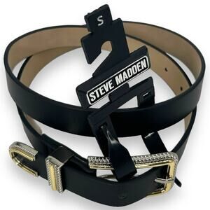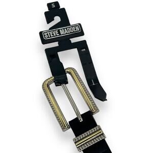 NEW Steve Madden Belt Small Black Faux Leather Belt Western Goth Silver Gold