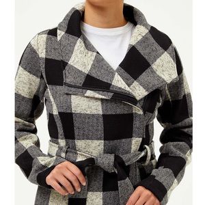 NEW Steve Madden Black & White Plaid Buffalo Check Wrap Coat Belted Plus Size 1X