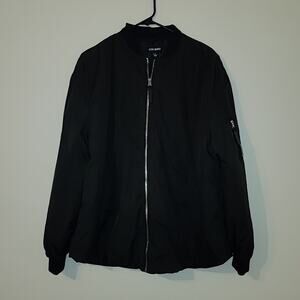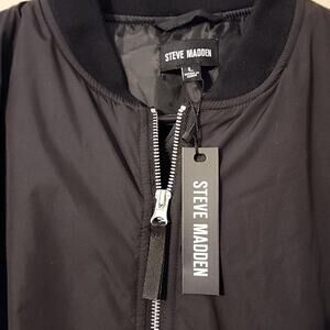 Stay warm in this oversized jacket constructed with ribbed trim and convenient pockets for everyday style.