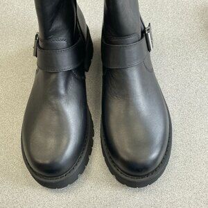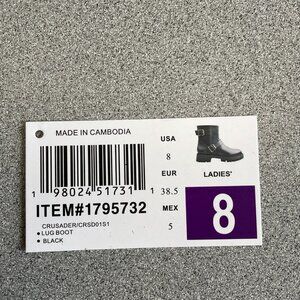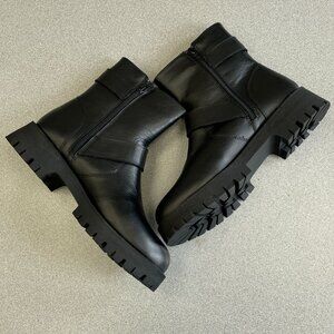 NEW Steve Madden Crusader Leather Women's 8 Black Ankle Lug Boots Buckle Straps