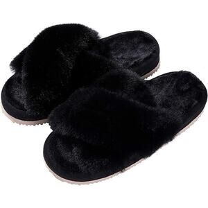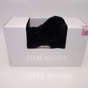 NEW Steve Madden Faux Fur Fuzzy Criss Cross Slip On Slippers Women's 5-6 BLACK