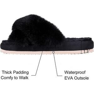 * COZY PLUSH LINING: Arch support design along with comfy man-made plush lining, you will feel like walking on clouds when you slip on these slippers, very fluffy and relaxing to feet.