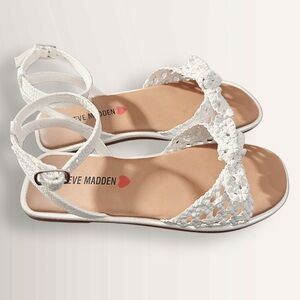 NEW Steve Madden Girl’s Open Toe/Back Raffia Sandals White Size 1