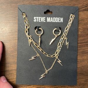 NEW Steve Madden Gold Lightning Bolt Earrings and Double Necklace Bundle