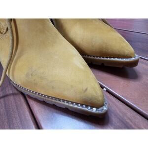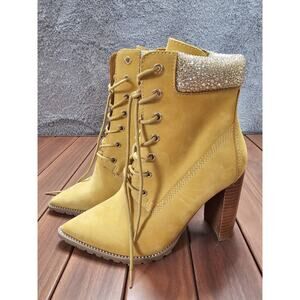 NEW Steve Madden Karmen Tan Lace Up Pointed Toe Bootie Stacked Heel Boots sz 6.5