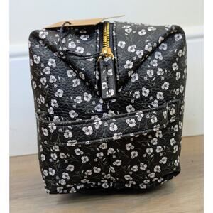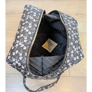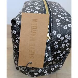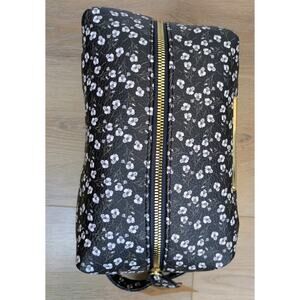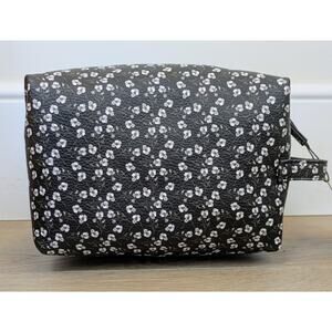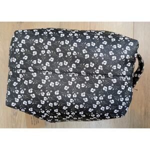 NEW Steve Madden Large Cosmetic Bag Black White Mini Floral Coated Quilted Lined