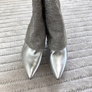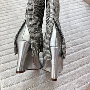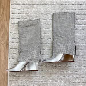 NEW Steve Madden Riski Rhinestone Foldover Tall Wedge Boots in Silver Size 5.5