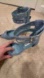 If you want to stand out choose these shoes! They are absolutely stunning with a long pointed toe tipped with silver tone and silver tone accents all over the buckles and heels. Base color is a jean like material with two ankle straps and a zip up back closure.