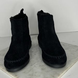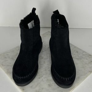 NEW Steve Madden Tommy Bootie Black Suede Shearling Lined Ankle Boots Size 5