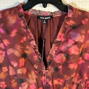NEW Steve Madden Top L Hollis Pink Multicolor Muted Peplum Bishop Sleeves Button