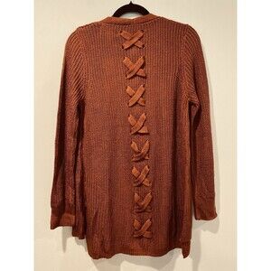 NEW Stitch Fix Cardigan Womens Medium Rust Burnt Orange Crochet Open X Back