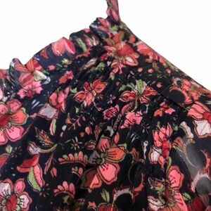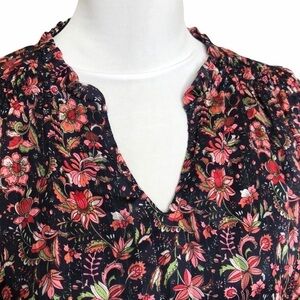 NWOT Loose fit Floral print with gold metallic thread peasant style top