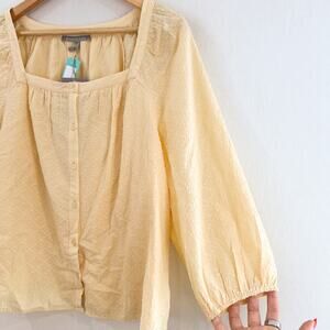 NEW Stitch Fix Daniel Rainn Goldie Blouse Large Butter Yellow Square Neck Blouse