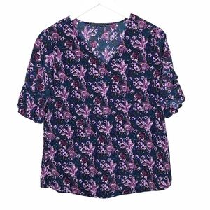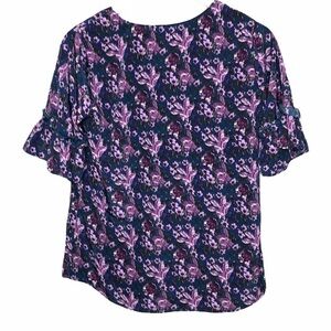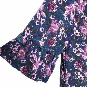 NWOT Vee neck Iris floral print top Shirt ruffle bell sleeve Pull over style Bust 36” Length 24 1/2”