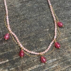 Features: gold plated stainless steel, small glass crystal beads and semiprecious stone