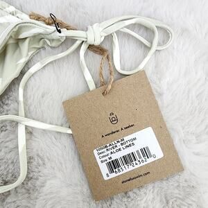 NEW Stone Fox Swim River String Bikini Swim Bottoms in Aloe Lines Light Green