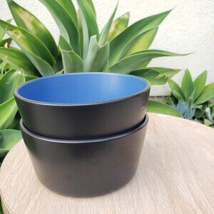 NEW Stone Lain 2 Bowls Stoneware Dinnerware Set Blue and Black