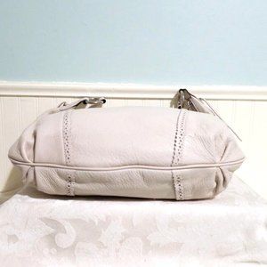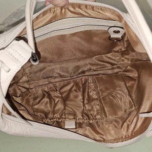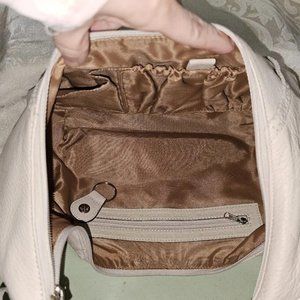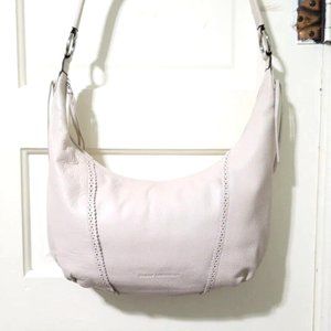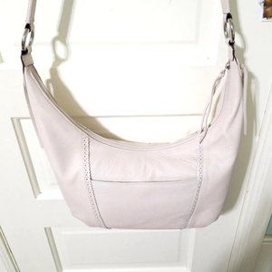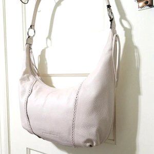 NEW Stone Mountain Cream 100% Leather Small Crescent Shoulder Bag Purse Top Zip