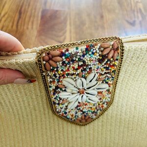 NEW Straw Clutch Crossbody Bag Shell Pearl Closure