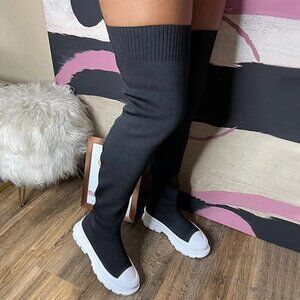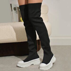 NEW🔥 Stretchy Knit Over The Knee Thigh High Platform Sock Sneaker Boots Pull-On