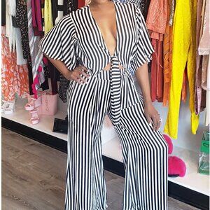 NEW Stripe Twist Tie Cutout Jumpsuit SZ S