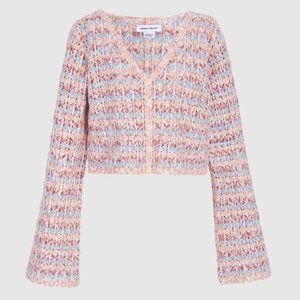 NEW Striped Button Up Crop Knit Sweater Cardigan