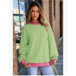 NEW Striped Crewneck Oversized Sweatshirt Pullover Sweater S