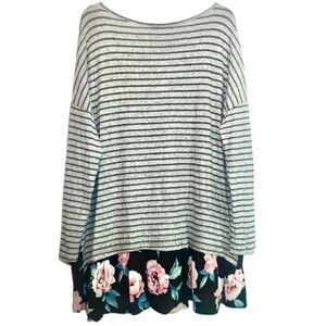 NEW Striped Knit Top with Floral Ruffle in Grey/Black/Pink/Green Women’s XXXL