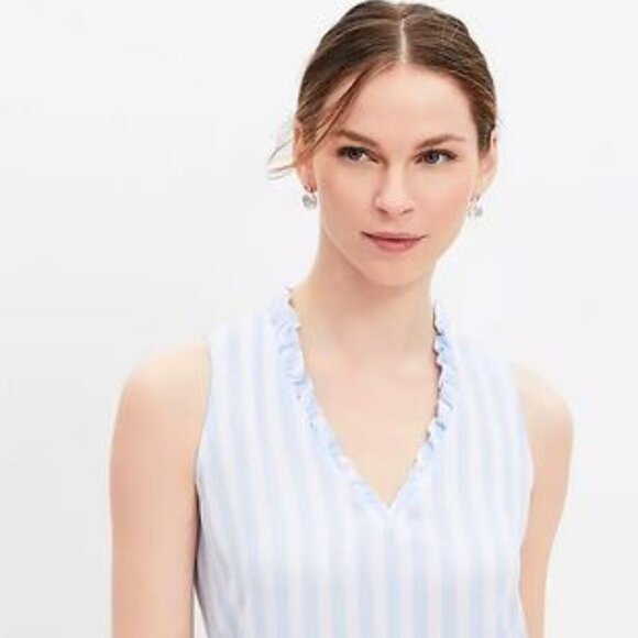 NEW - Striped Ruffle V-neck Mixed Media Shell