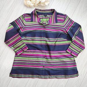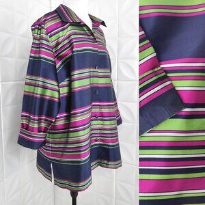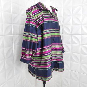 NEW Striped Silk Blouse Button Up Talbots Blue Pink Green Collar Plus 22W