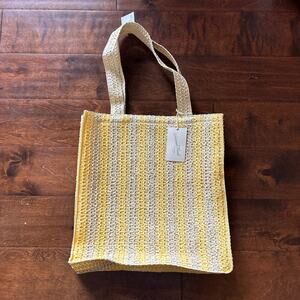 NEW Striped Straw Crochet Tote Bag Universal Thread Yellow Beach Summer