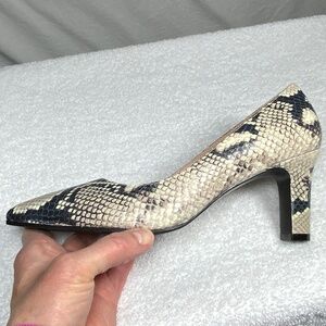 Elegant pointed toe pumps with glamourous python-embossed upper