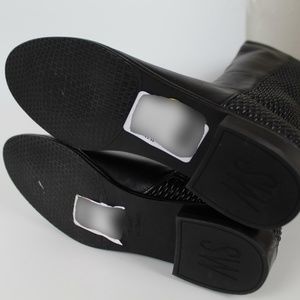 A stepped topline and a diamond-textured stretch panel in back define a Spanish-made riding boot in a polished over-the-knee silhouette.
