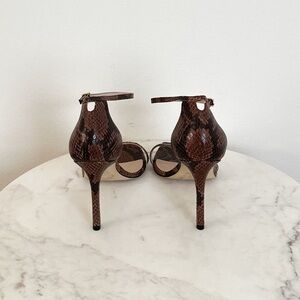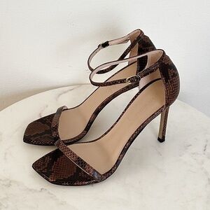 NEW Stuart Weitzman Amelina 95 Snake Embossed Sandals Nudist Brown Size 8.5