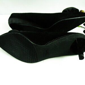 NEW Stuart Weitzman Black/Gray Suede Rosette Pumps 7.5 M