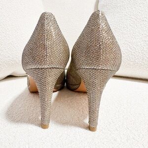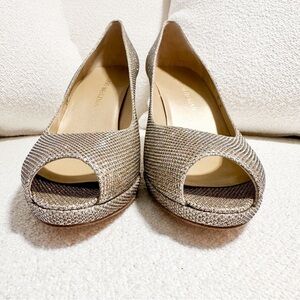 NEW Stuart Weitzman Gold Glitter Shimmer Metallic Open Toe Heeled Pumps sz 8