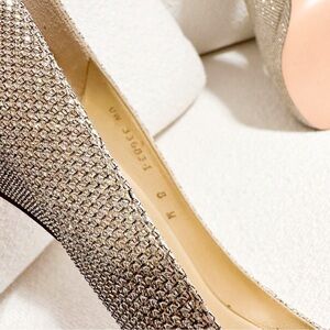 New without box. Stuart Weitzman Gold Glitter Shimmer Metallic Open Toe Heeled Pumps. Size 8. Leather. Never worn.