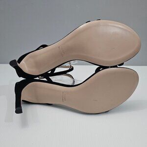 Stuart Weitzman Lexie Sandal Heel Wraparound Ankle Black Suede