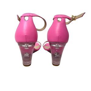 NEW Stuart Weitzman Nudistlucite Leather Wedge Sandals Size 8 barbie pink heels
