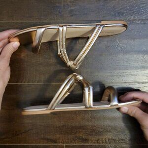 New without box, never ever worn, Stuart Weitzman Twist Knot Sandal Womens 7.5 Rose Gold Leather Flats Retail $350. Twist Knot Leather Sandal in rose gold leather Lightly padded leather insole, leather sole
