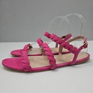 NEW Stuart Weitzman Twistie Sandal Flat Braided Strappy Pink Suede Size 10