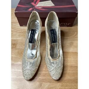 NEW Stuart Weitzman for Mr Seymour Bridal Heels White Lace Size 6.5 JL