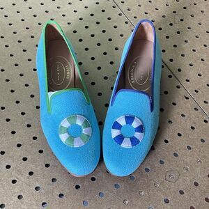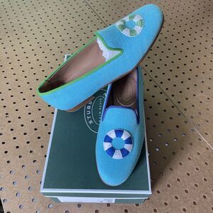 NEW Stubbs & Wootton Loafer Womens 7.5 Aqua Blue Palm Beach Slipper Spain NIB