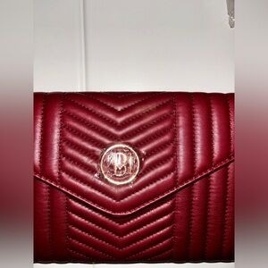 NEW Studio Badgley Mischka Crossbody Purse V- Quilted Leather Vegan Wine Logo
