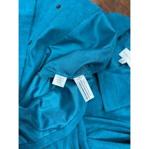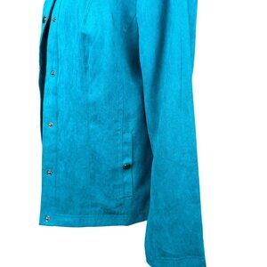 In the realm of outerwear, this Studio Works jacket stands as a vibrant testament to style and elegance. The captivating teal hue is bound to draw compliments, while the button-up design provides both functionality and a touch of sophistication. Tailored to offer a flattering fit for the modern woman, this jacket is an essential addition to any wardrobe, promising to elevate even the simplest of ensembles with its distinct charm.