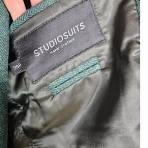 NEW Studiosuits 3 Piece Suit 38 30 Green Herringbone Vest Blazer Career Wool. Blazer is a 38, pants a size 30. Vest chest is 19 in across, length is 25 in. Jacket chest is 20 in across, length is 27 in. Pants waist is 15 in across, inseam is 30 in