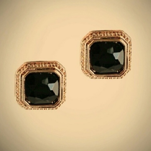 Brand New, beautiful stud earrings. Black Gem with 18k gold plated metals. Glass crystal. Lead & Nickel free. Large studs -measures 2.5 cm