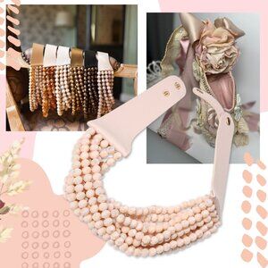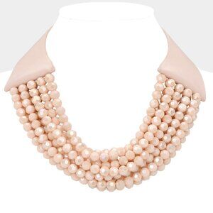 NEW Stunning Faceted Beaded 7-Strand Bib Statement Necklace Ballet Slipper Pink