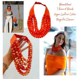 NEW Stunning Faceted Beaded 7-Strand Bib Statement Necklace in Orange Punch