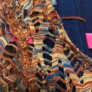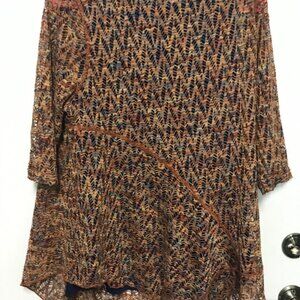 ABSOLUTEY BEAUTIFUL NAVY TANK W/ MULTI-COLOR OPEN WEAVE OVERLAY TUNIC. SZ. 1X